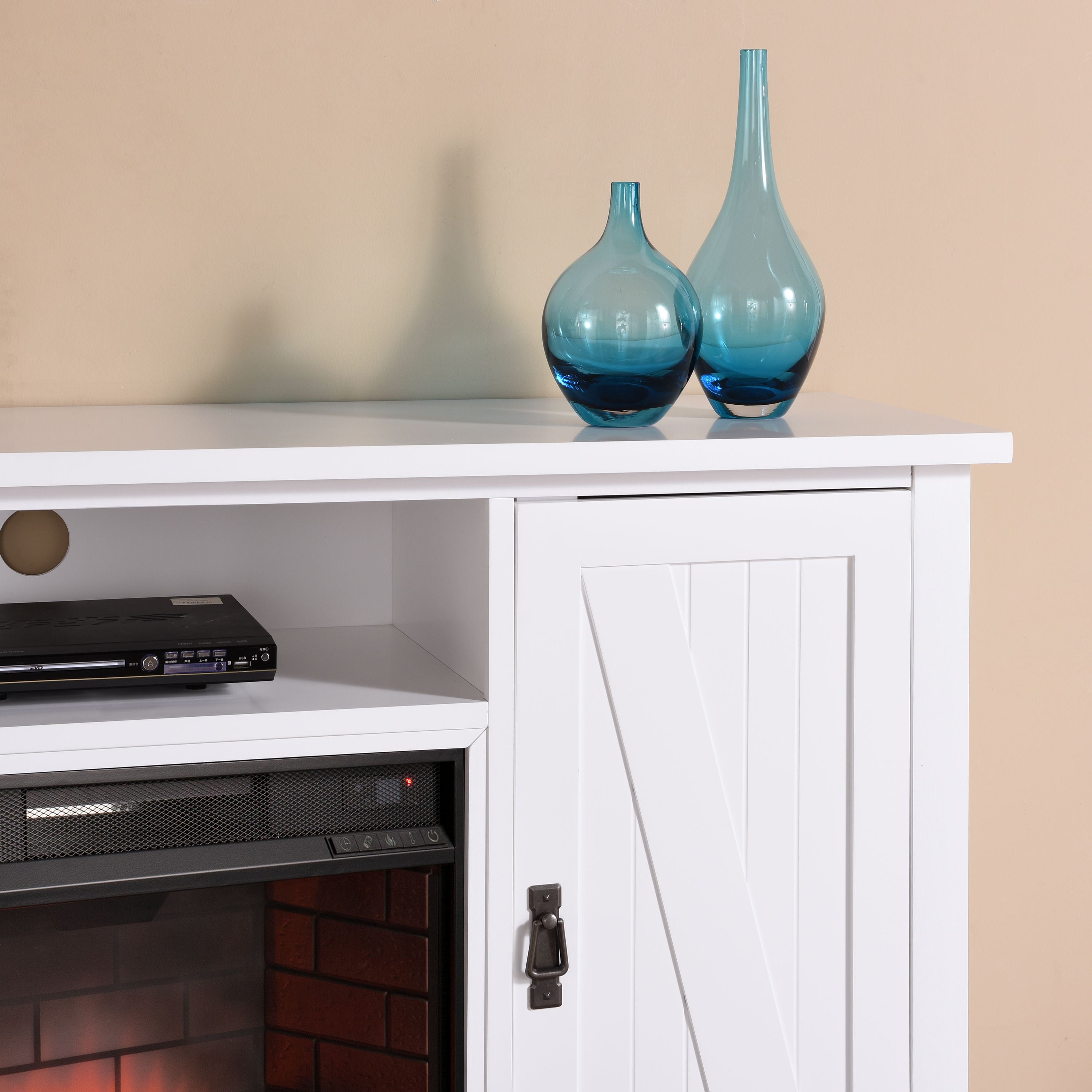 Such an easy way to do a diy farmhouse style fireplace makeover on a budget with shiplap above the mantle and using stone tile and plywood. Ameriwood home farmington electric fireplace tv console for tvs up to 60 natural 38 out of 5 stars 626. Buy southern enterprises adderly farmhouse style electric tv stand fireplace white.